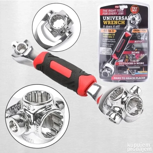 Univerzalni ključ 48 u 1 je dizajniran da vas oslobodi stalne potrage za odgovarajućom veličinom ključa. Zahvaljujući jedinstvenom mehanizmu i postavkama, ovaj alat omogućava brzo i efikasno zavrtanje i odvrtanje različitih vrsta i oblika vijaka.