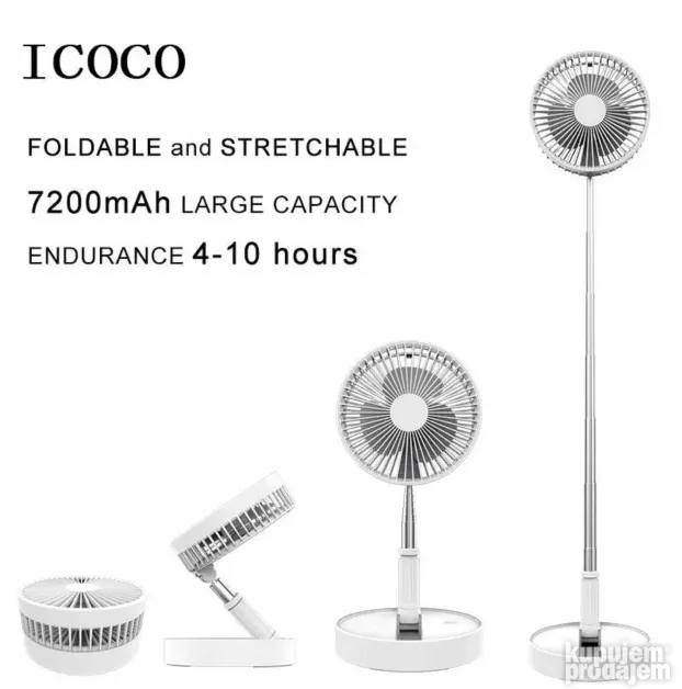 USB Punjivi Sklopivi Ventilator za Sto i Pod – 7200mAh