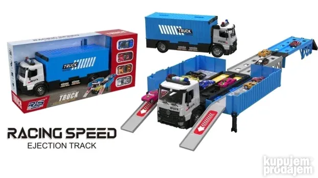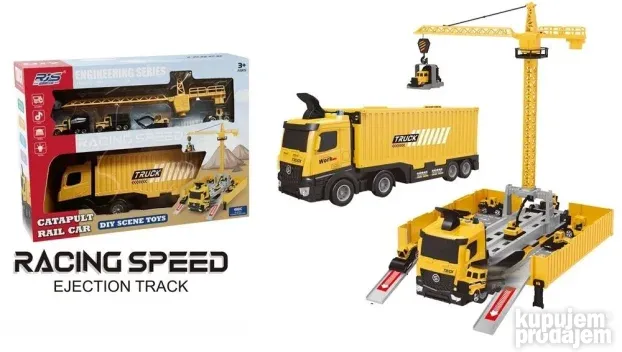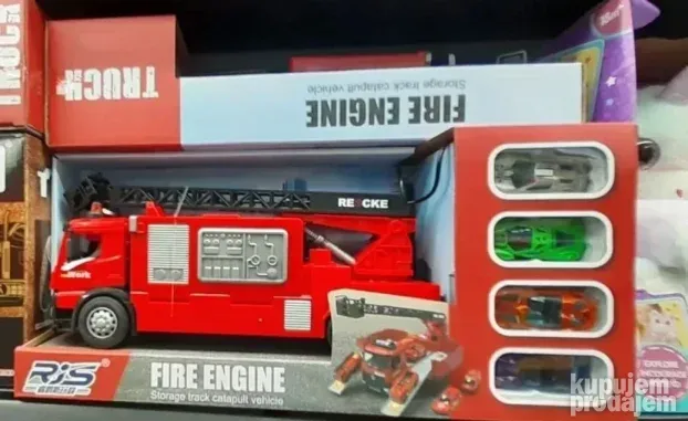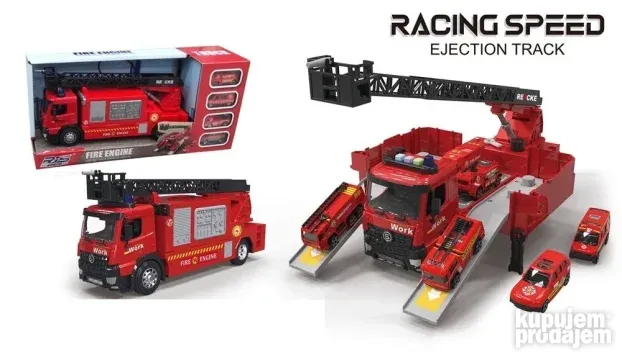 Vatrogasni kamion sa dizalicom i rampama + 4 autića