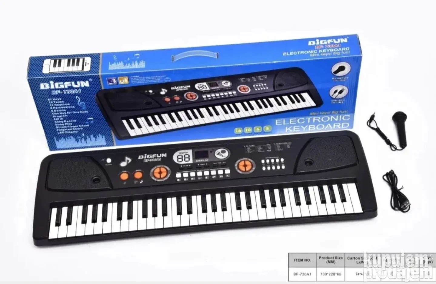 Veliki sintisajzer BigFun 61 dirka + mikrofon i USB elektronski klavir
