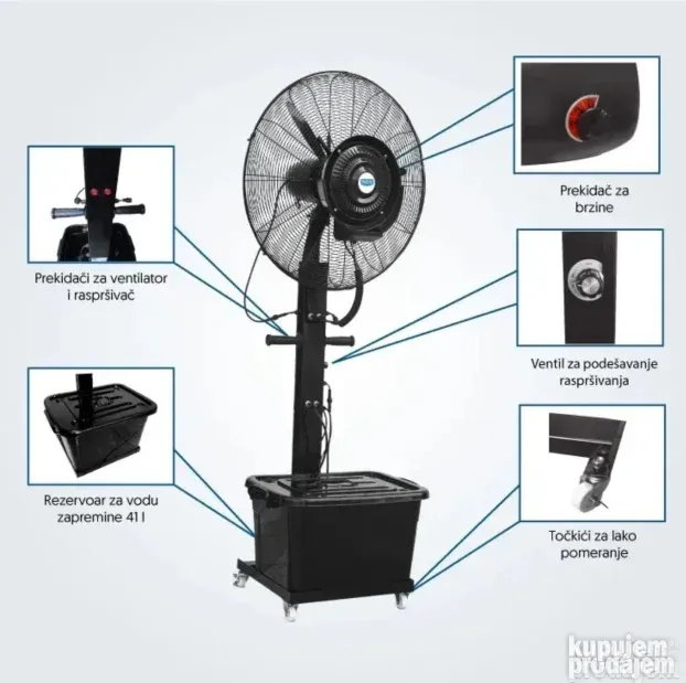 - ✔ Podesiv raspršivač vode za optimalno hlađenje i osveženje