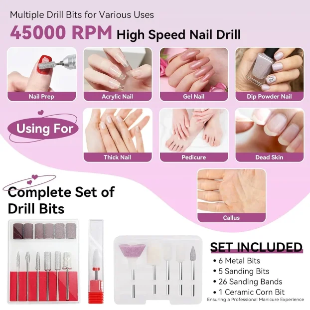 Vrenmol električna turpija za nokte 45000 RPM | Profesionalni set