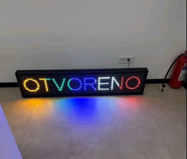 Hit Proizvod za Vaš Biznis! LED Svetleća RGB reklama dimenzija 130x20cm. Lako programiranje preko telefona, savršena za spoljašnju i unutrašnju upotrebu. **Garancija 1 Godina!**
