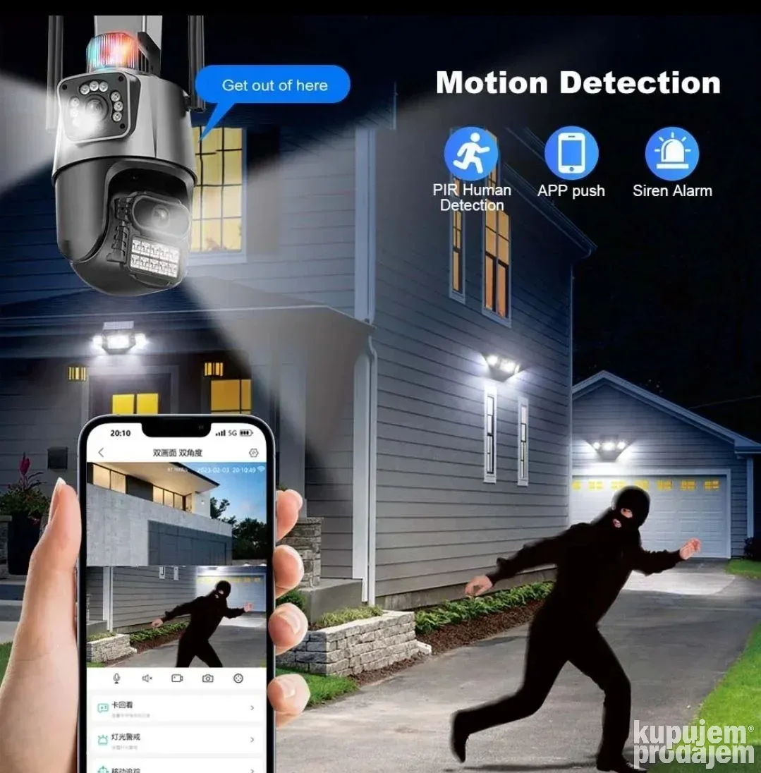 Wifi IP PTZ kamera sa 2 sočiva, sirenom i 4K rezolucijom