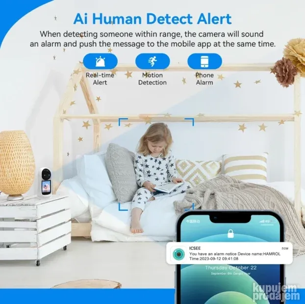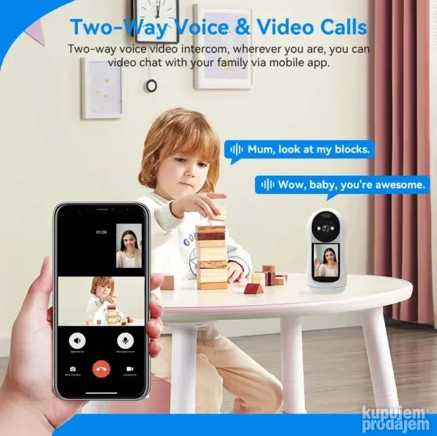 WiFi kamera 5MP sa ekranom pruža visok kvalitet slike i zvuka.