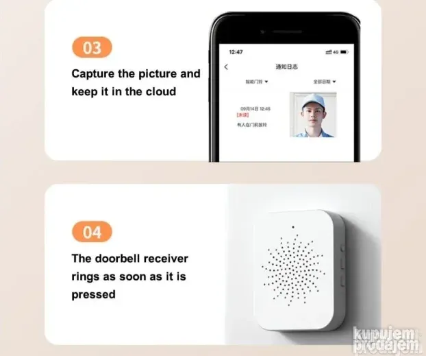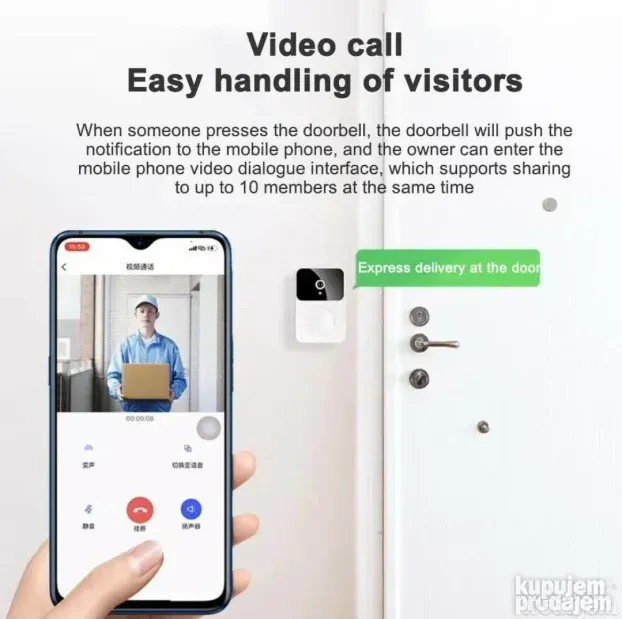 Jednostavno je za instalaciju. Omogućava praćenje ko je na vratima direktno na telefonu. Idealno za kuće, stanove i poslovne objekte.