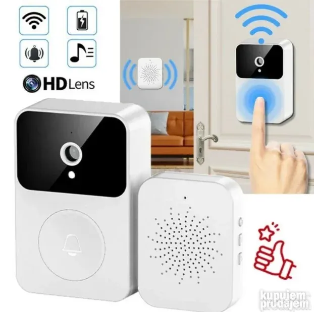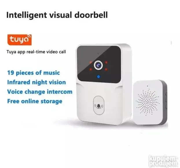 Ovo video zvono omogućava interfon u realnom vremenu. Pritisnite dugme i odmah se povežite. Ultra-niska potrošnja energije osigurava dug period pripravnosti. Brzo snima i čuva fotografije i video zapise u oblaku zauvek. Podržava Android i iOS aplikacije. Infracrvena funkcija omogućava noćni vid.